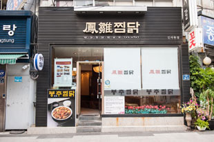 「鳳雛チムタク」の誕生 2000年10月、安東で食べられる味を再現した「鳳雛チムタク」がソウル・恵化洞(ヘファドン)に1号店をオープンしたことがきっかけとなり、ソウルの人々にも「チムタク」の存在が広く知られるようになりました。オープン当初は「安東チムタク」という名でお店を運営していたのですが、地名と料理名を同時に店名に付けたことで不具合が生じ、現在の店名「鳳雛チムタク」に落ち着いたといいます。店名が変わってもチムタクの人気は衰えることなく、現在(2013年10月現在)ではソウル市内だけでも全61店舗を展開する大型チェーン店となりました。こちら仁寺洞(インサドン)店は多くの外国人旅行者が訪れる仁寺洞メインストリート沿いに位置しているため、観光の合間にも気軽に立ち寄ることができ、便利です。