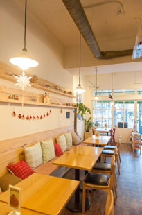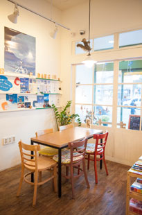 童話のなかから飛び出してきたかのようなキュートな店構えに、広々とした店内。窓際のカウンターテーブルからは人や車が行き交う様子が伺えます。観光の合間や、忙しい日常からちょっぴり抜け出したい時に気軽に立ち寄れるお店です。同じ建物の3階には旅行会社が併設されていて、旅のパンフレットや雑誌も豊富に並べられているのにも興味がそそられます。