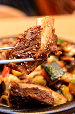 「トッケビプルコギ」のメインメニューはもちろんプルコギですが、短い韓国旅行の期間に一度でたくさんの韓国料理が楽しめるよう、多様なメニューを用意しています!なかでも人気なのは、こちらの「ソカルビチム」です。骨付きカルビを甘辛く煮込んだカルビチムはお肉が骨からスルっと外れて食べやすく、かぼちゃや栗、餅などがごろごろ!