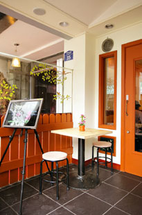 場所は、地下鉄2号線「梨大(イデ)」駅から徒歩5分。「Yes apm」の裏手に位置している、可愛らしい木目状の店構えが目印です。店内はこぢんまりとしていて、ランチタイムは待ち時間が発生することも。