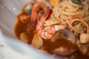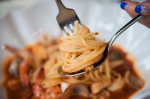 SPICY SEAFOOD PASTA エビ・イカ・貝などの海の恵みがゴロゴロ入った、スパイシーなパスタは「ONL」の人気メニュー。とはいえ、辛すぎることはなく、負担なく楽しめるのが特徴です。プリプリのパスタにガーリックが加わった風味豊かなソースが絡まり、後味をひく美味しさが愛されています。 価格:24,000ウォン