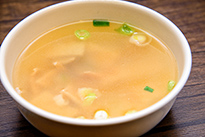 サービスメニューは何度でもおかわりOK!! テーブルにつくと出てくるタンコン(ナッツ)、そして少しあとに出されるケランマリ(たまご焼き)とオデンクク(おでんスープ)。豊南コルベンイではこのすべてが何度でもおかわりできます。ピリリと辛いコルベンイにケランマリは相性抜群!気兼ねなくおかわりしてみてください。