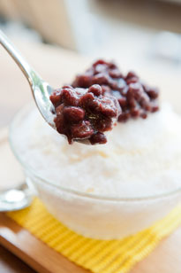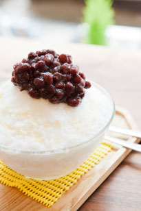 王道パッピンスが基本! 5種のピンスにはパッピンス(小豆)・緑茶ピンス・イチゴピンス・アーモンドピンス・五味子ピンスがあります。なかでも一番人気はやはり「通仁ピンス」を代表する「ヌンコッ(雪の華)パッピンス」。雪のようにさらさらと柔らかい氷に、手作りの練乳(追加可能!)と、手作りの小豆がたっぷりとトッピングされた、いわば王道ピンス。とてもシンプルに思えるピンスですが、ここでは、氷、練乳、小豆それぞれの味を最大限に楽しむために、全体を混ぜずにアイスクリームをすくうようにして食べることがおすすめされています。